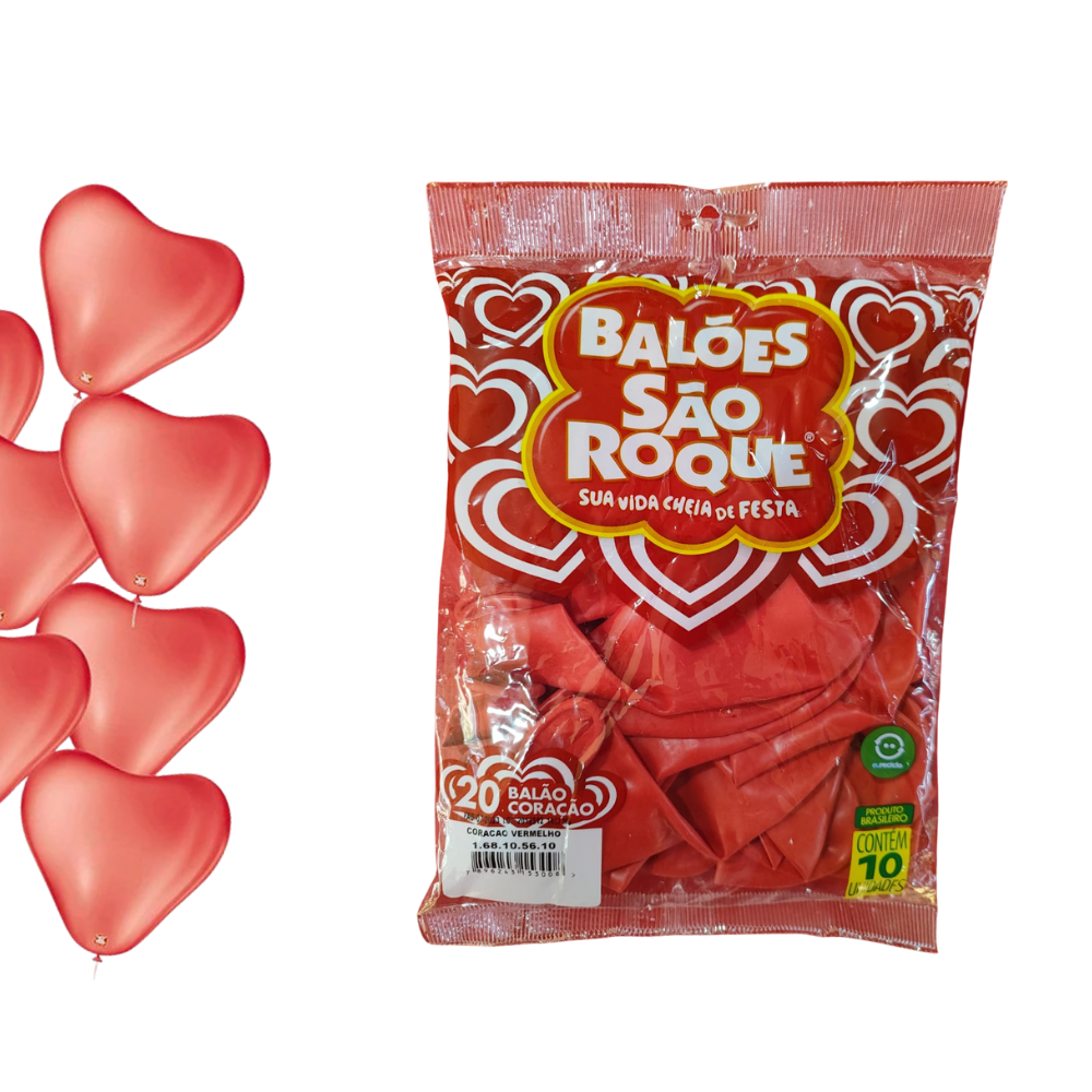 Balão São Roque CORAÇÃO com 10 unidades no pacote. Um dos mais usados para todo tipo de decoração tipo, Dia dos Namorados, Dia das Mães.