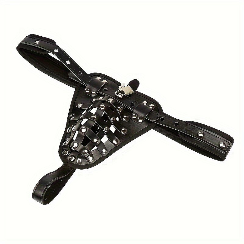 É um cinto de castidade masculino em couro com formato de cueca ajustável. Acompanha um cadeado metálico com chave para prender o anel no cinto. Mantenha seu parceiro dominado com este resistente cinto de castidade.