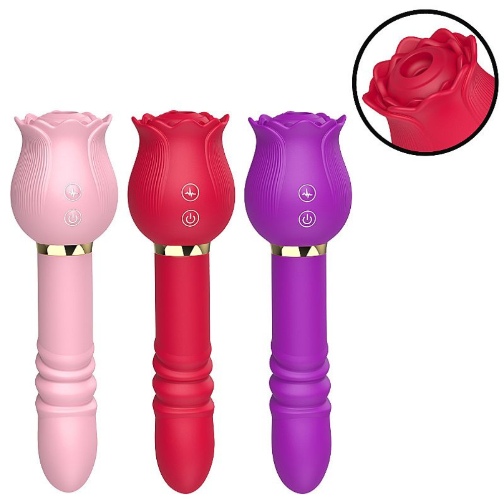 Vibrador de ponto G e clitóris com formato de Rosa - 12 modos de pulsação. 12 modos com vai e vem. o produto é macio ao toque ergonômico, o que facilita o manuseio e a estimulação, trazendo uma sensação prazerosa do uso.